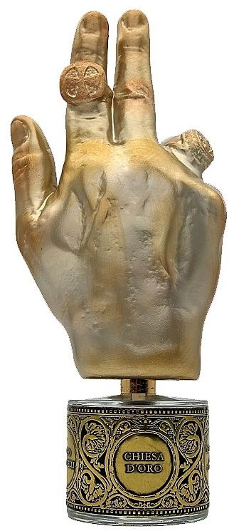 Chiesa d’Oro är en parfym som bär denna arvsmättade historia på huden. Nästan orientaliska noter av kryddor och rökelse möter ljusets glöd och basilikan själv.Skimrandes gyllene, upphöjd och majestätisk. Resultatet är en doft som inte bara bärs, utan upplevs: en levande ritual, en helig skatt, en exklusiv signatur för den som söker det oåtkomliga.