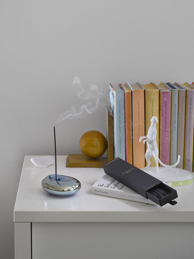 Moroccan Mint rökelsestickor öppnar med en sval och klar friskhet. Mynta, gröna blad och en mild ton av te ger rummet en direkt känsla av lätthet och renhet. Det är friskt utan att bli flyktigt, tydligt utan att kännas hårt. Doften utvecklas mjukt medan den brinner. Den gröna klarheten får ett mer avrundat djup, en stillsam örtighet som landar i ett behagligt lugn.
